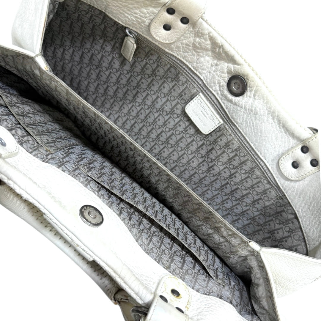 CHRISTIAN DIOR WHITE GAUCHO DOUBLE SADDLE BAG